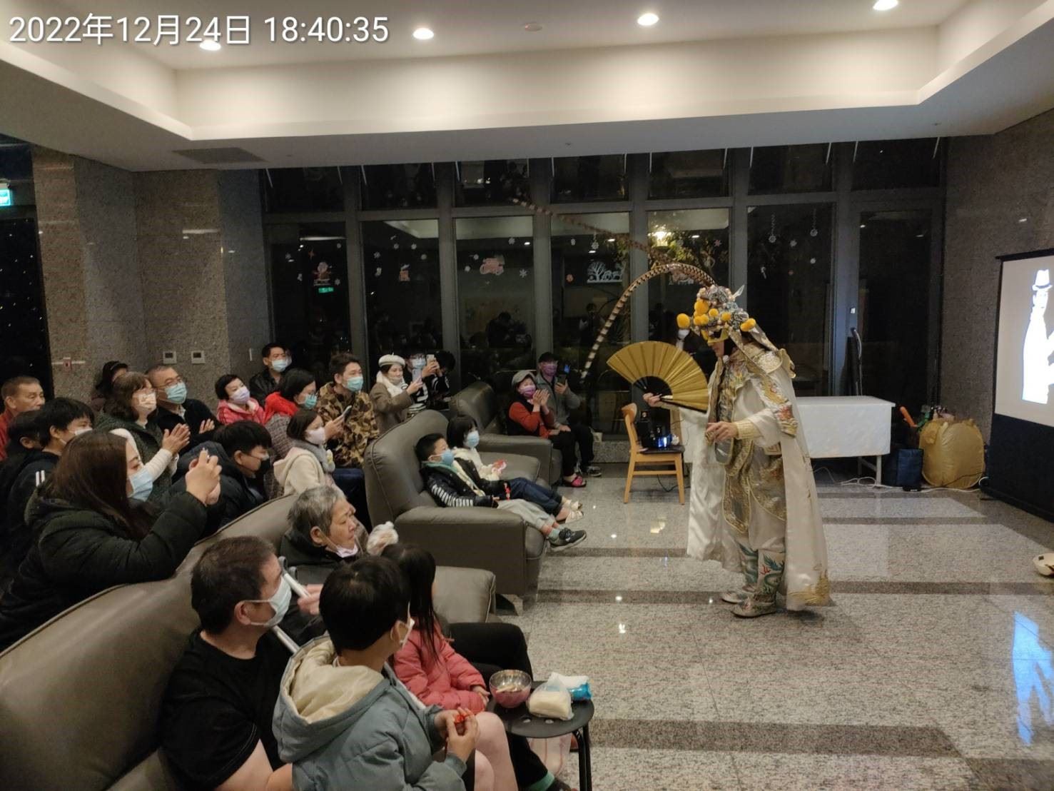 八德二號的聖誕晚會當天,活動卡司陣容豐富,有魔術表演、氣球秀,緊接著由大姊姊帶動跳,活絡現場氣氛全場嗨翻,有摸彩、雙人樂團歌唱表演,讓八德二號社會住宅住戶盡情歡樂。