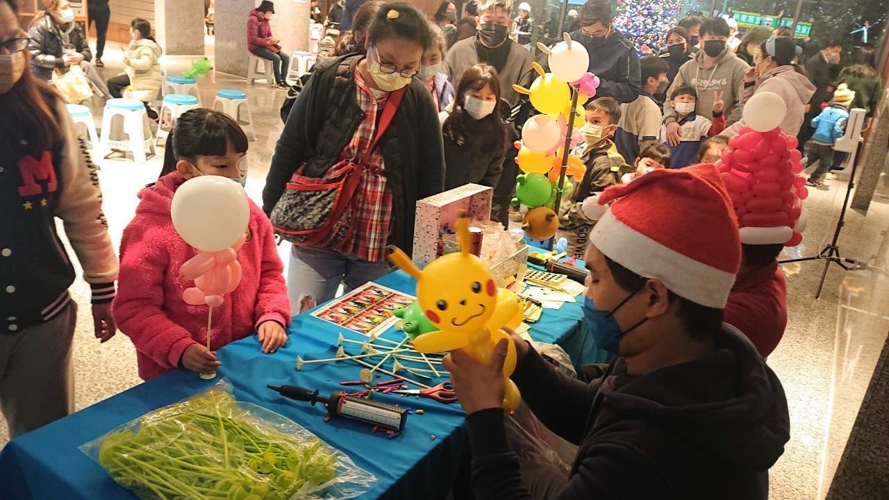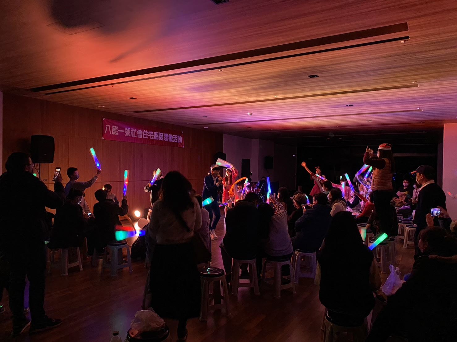 八德二號的聖誕晚會當天,活動卡司陣容豐富,有魔術表演、氣球秀,緊接著由大姊姊帶動跳,活絡現場氣氛全場嗨翻,有摸彩、雙人樂團歌唱表演,讓八德二號社會住宅住戶盡情歡樂。