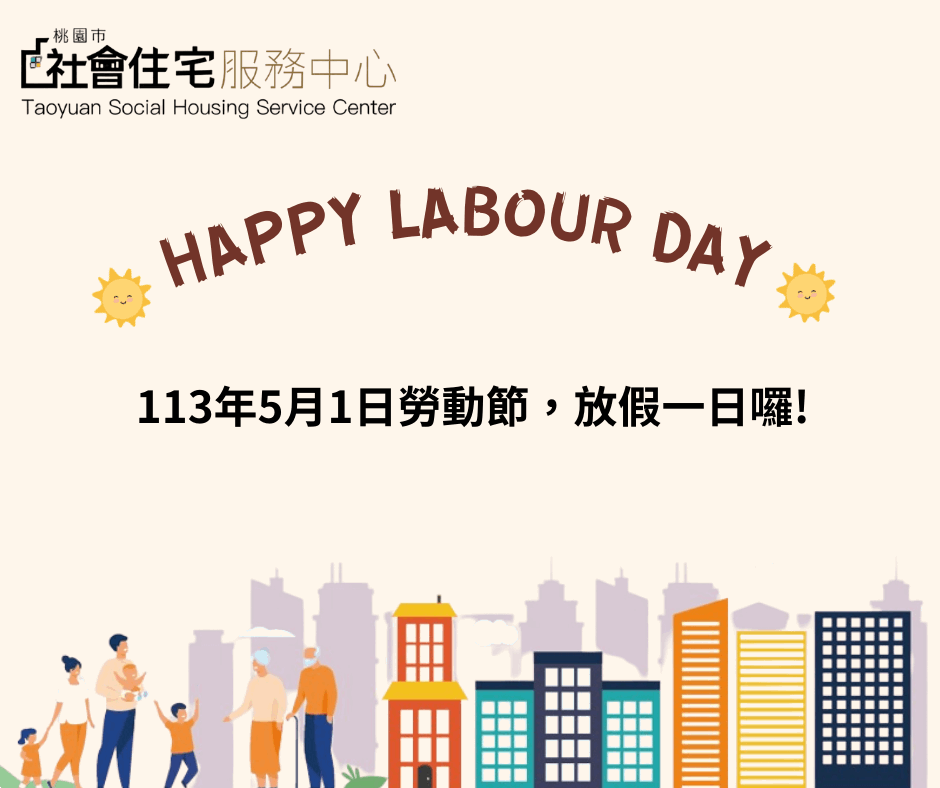 【公告】本中心員工為適用勞動基準法之勞工, 114年5月1日(四)勞動節放假1日,相關業務請於5月2日(五)上班日洽詢。