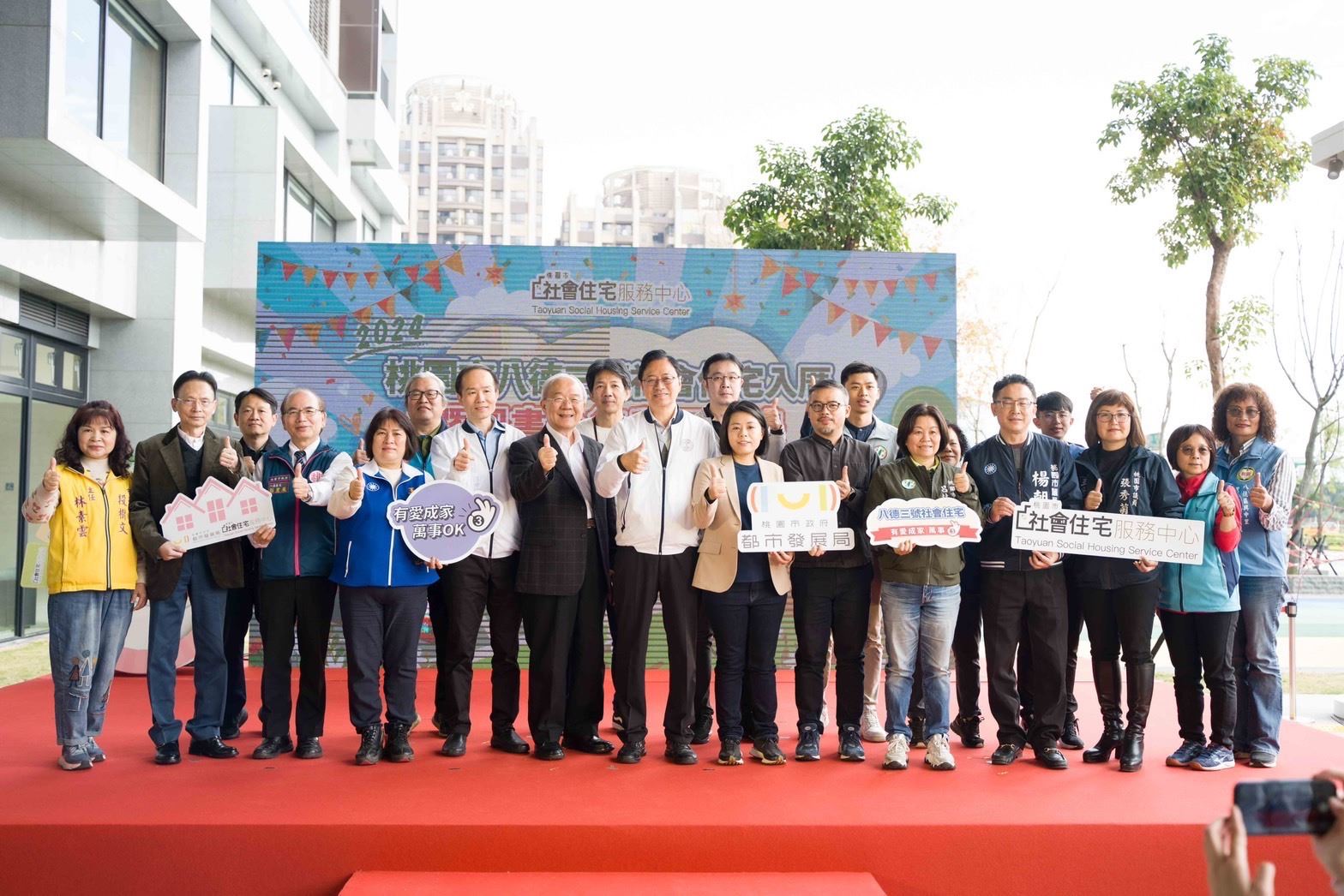 桃園市長張善政今(3)日出席桃園八德三號社宅入厝典禮,恭喜住戶年前入厝,同時也宣布全桃園第一座社宅圖書分館試營運起跑,八德三號社宅為目前全桃園第2大的社宅,提供524戶入住,統計入住率超過9成,其中公共設施提供圖書館、幼兒園等7項公共設施,為市府住宅政策再添新的里程碑。