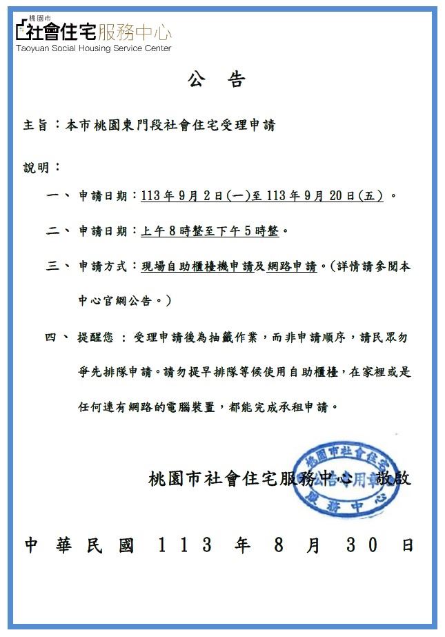 【公告】東門段社會住宅申請注意事項