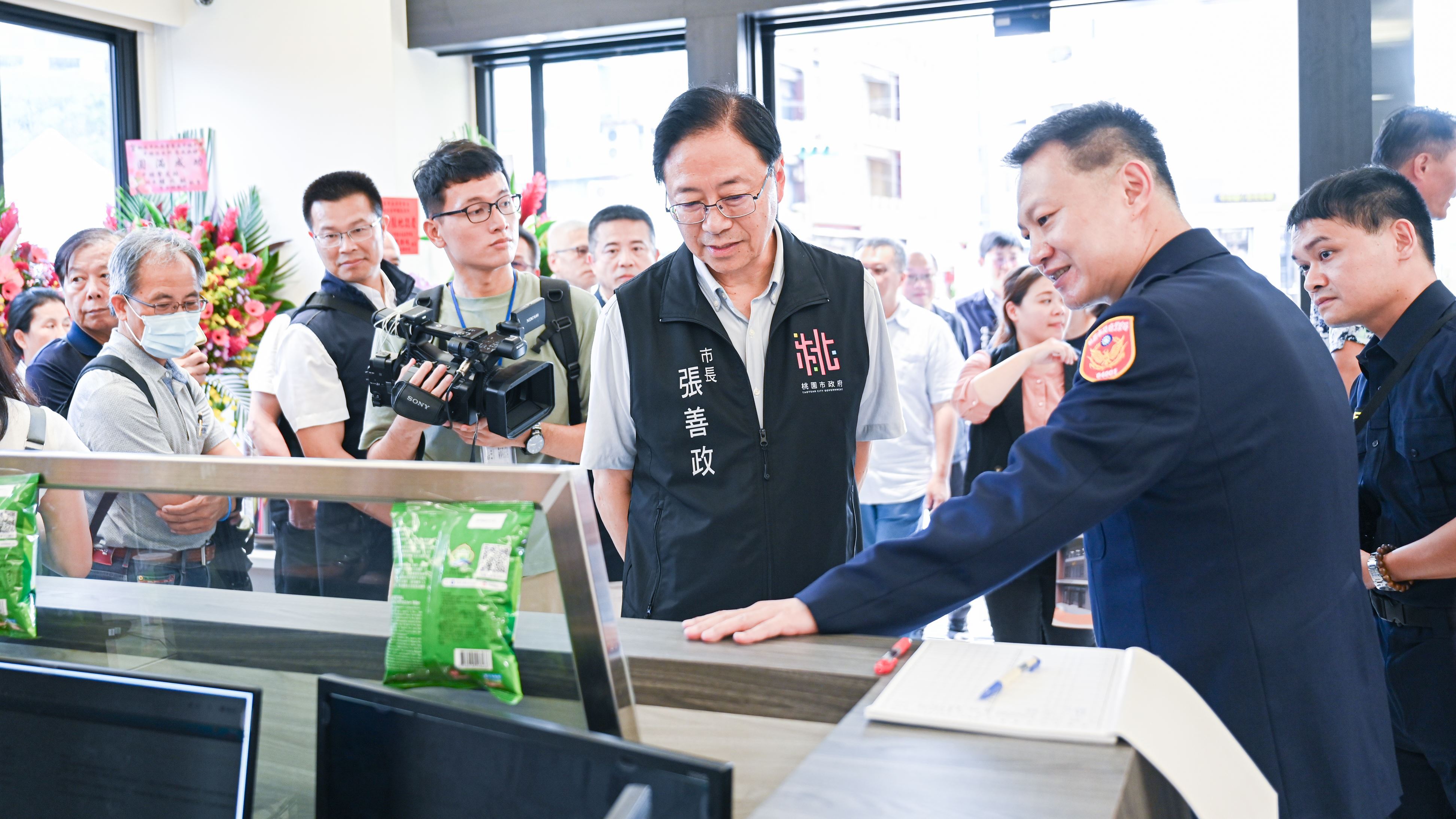 桃園市長張善政出席表示,派出所原址為中壢分局員警宿舍,此次市府透過都市更新,首創派出所與社會住宅共構模式嶄新落成。中壢區為桃園市治安與交通最具挑戰的地區之一,新建廳舍設備齊全,除辦公功能外,也設有完善的休憩空間,讓員警在工作之餘能充分充電,持續為民服務、守護市民安全。
