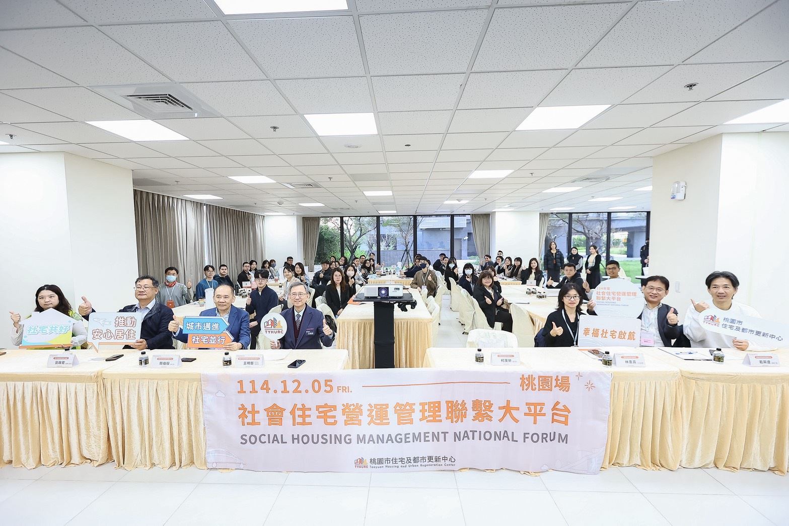 桃園市住宅及都市更新中心今(12/5)日於中壢一號社宅舉辦「114年度社會住宅營運管理聯繫大平台」,邀集中央及各地方住宅機關、社宅管理單位與物業專業團隊齊聚桃園、社宅管理單位與物業專業團隊齊聚桃園,針對社宅營運的管理思維與創新作法,透過實務分享、政策研討與跨域交流,來提升全國社宅的服務與管理品質。